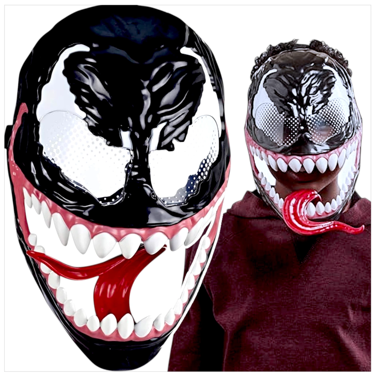 Twoje dziecko marzy o przebieraniu się za mrocznego bohatera? Maska świecąco Venom to idealny dodatek, który sprawdzi się podczas balu kostiumowego, imprezy tematycznej czy codziennej zabawy. Efektowne podświetlenie i charakterystyczny język sprawiają, że całość wygląda widowiskowo i przyciąga spojrzenia. Dzięki solidnemu wykonaniu i lekkiej konstrukcji maska jest wygodna w noszeniu przez długi czas. To rekwizyt, który nie tylko dopełnia przebranie, ale też dostarcza niezapomnianych wrażeń.