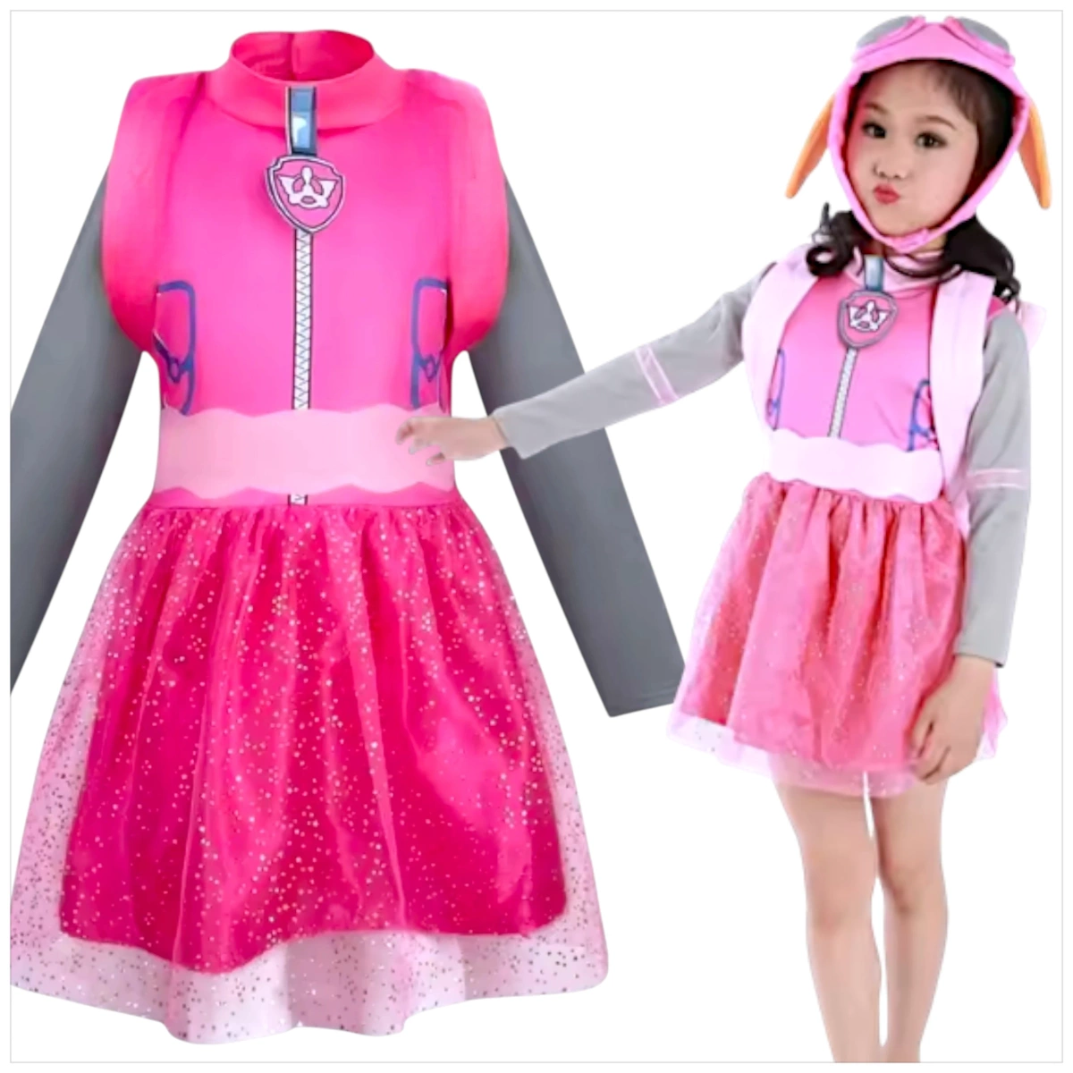 Fantastyczny zestaw przebierankowy dla każdej małej fanki bajki Psi Patrol, która marzy o lataniu wysoko i pomaganiu innym! Strój Skye – uroczej pilotki z drużyny dzielnych szczeniaków – zawiera kolorową sukienkę oraz charakterystyczną czapkę z uszkami. Dzięki temu zestawowi każda dziewczynka może wcielić się w swoją ulubioną bohaterkę i wyruszyć na niejedną misję ratunkową!
