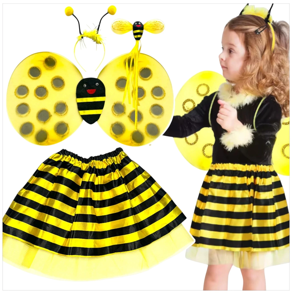 STRÓJ DLA DZIEWCZYNKI - PSZCZÓŁKA 3w1 OPASKA SPÓDNICZKA SKRZYDEŁKA