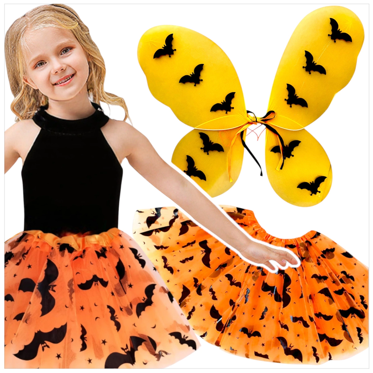 Zestaw Halloweenowy „Nietoperzowa Wróżka” – skrzydełka + tiulowa spódniczka (2-częściowy komplet)