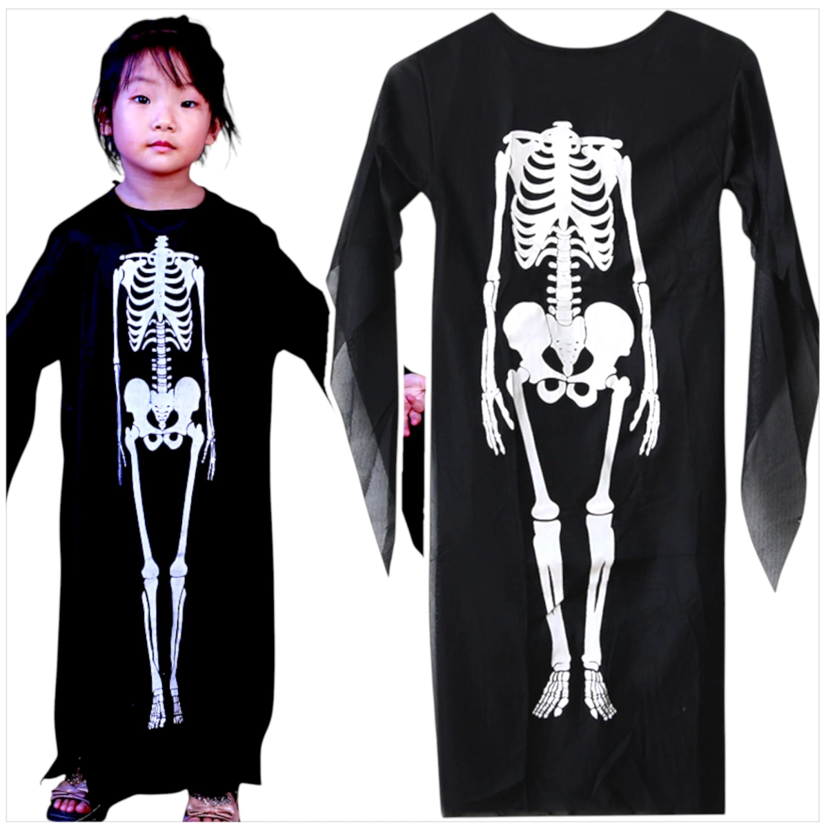 Uniwersalny, luźny krój sprawia, że kostium pasuje na wiele sylwetek, a jego stylowy design z wyraźnym nadrukiem kości przyciąga spojrzenia i budzi halloweenowy podziw.