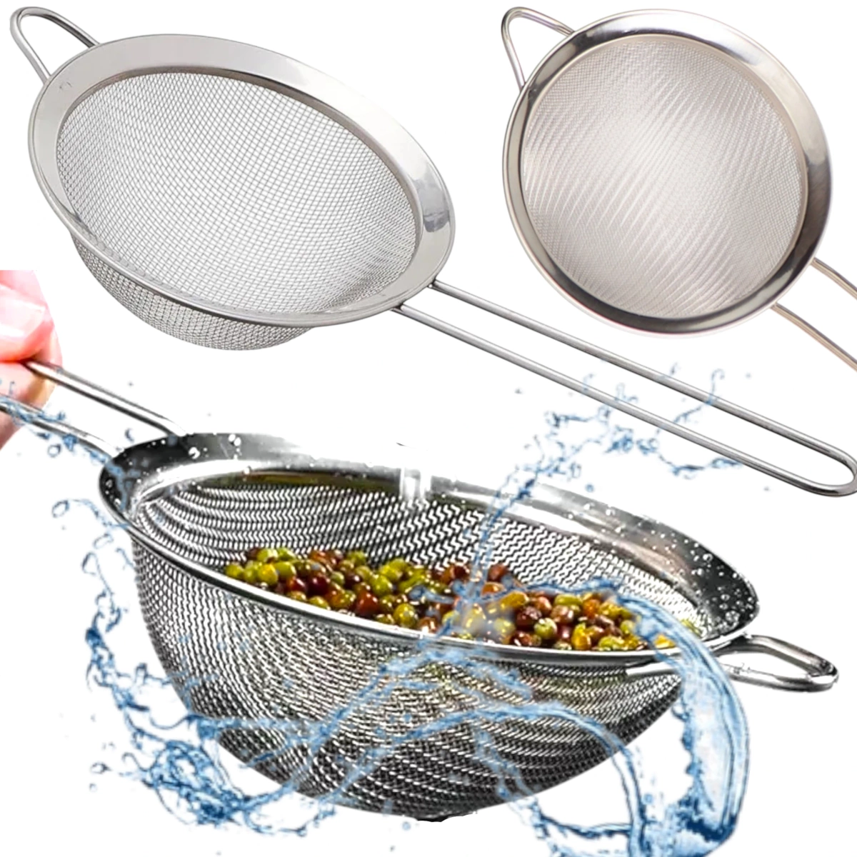 - Gęsta siatka skutecznie oddziela nawet drobne cząstki, co pozwala na idealne przesianie mąki, cukru pudru czy odcedzenie drobnych produktów.