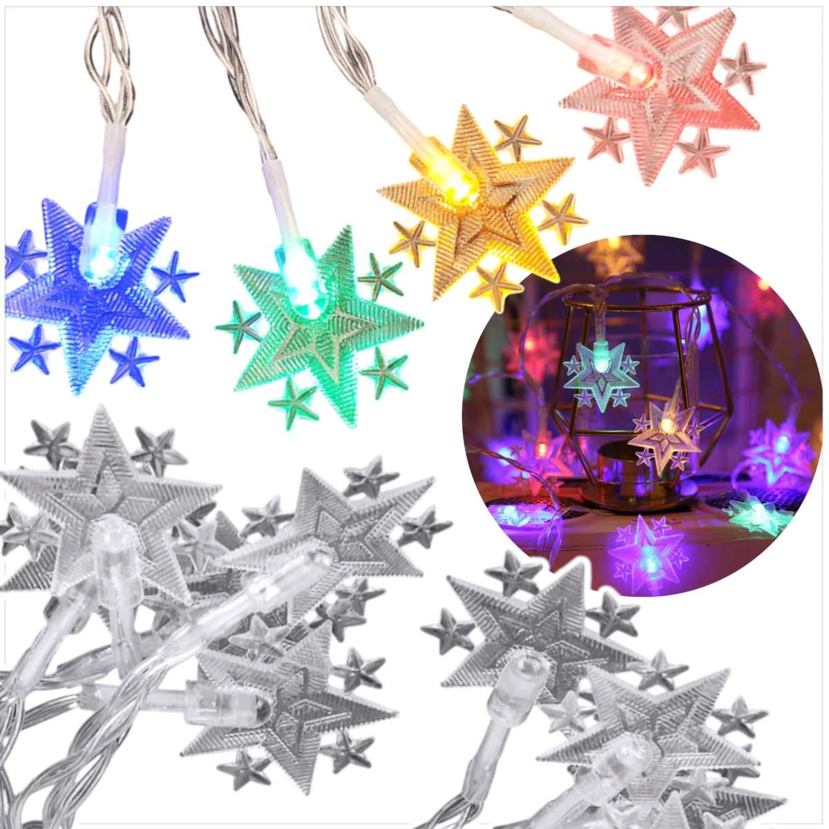 LAMPKI ŚWIĄTECZNE KSZTAŁT GWIAZD DEKORACJA ŁAŃCUCH LED KOLOROWE GWIAZDKI