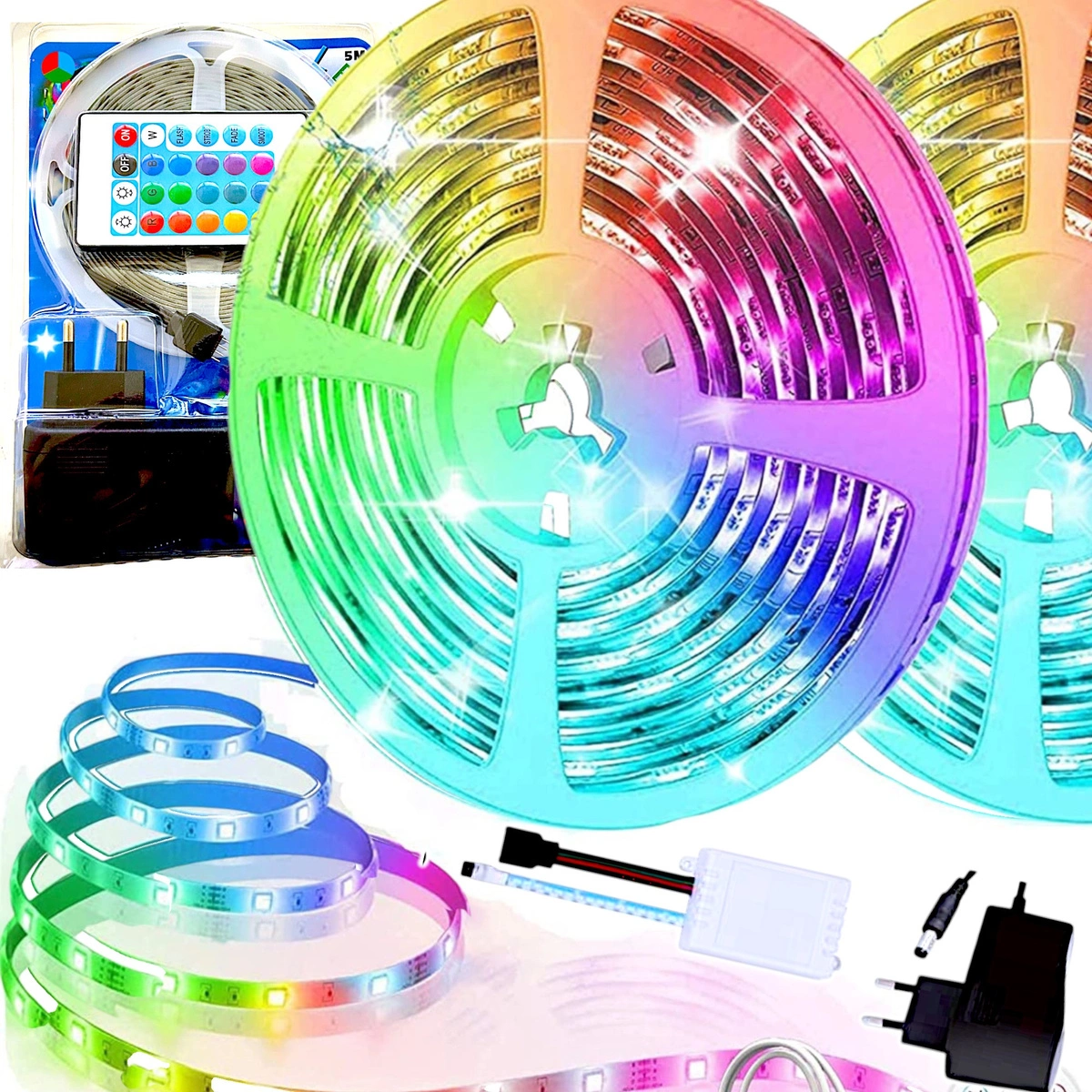 TAŚMA LED KOLOROWA WODOODPORNA 5M OŚWIETLENIE RGB KOLOROWA + PILOT
