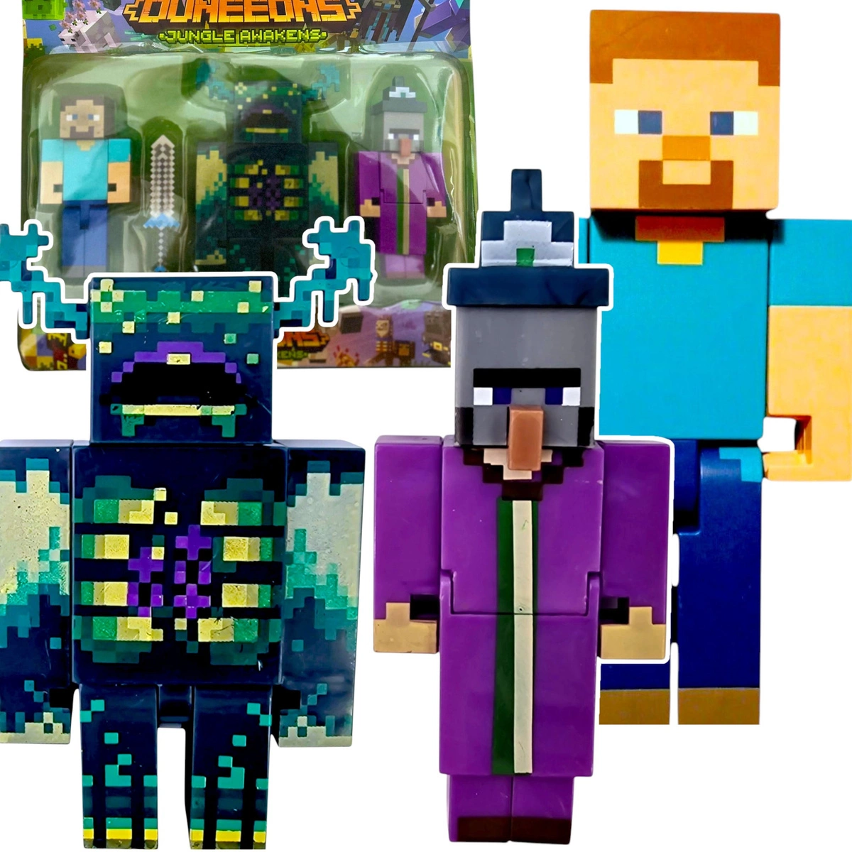 MINECRAFT - ZESTAW FIGUREK 3w1 STEVE WHISPERER WIEDŹMA WARDEN MIECZ DODATKI