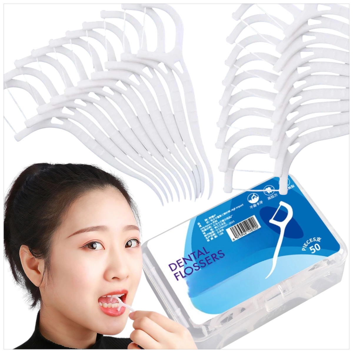 WYKAŁACZKI Z NICIĄ DENTYSTYCZNĄ NITKO WYKAŁACZKI DO ZĘBÓW ZESTAW 50 SZTUK